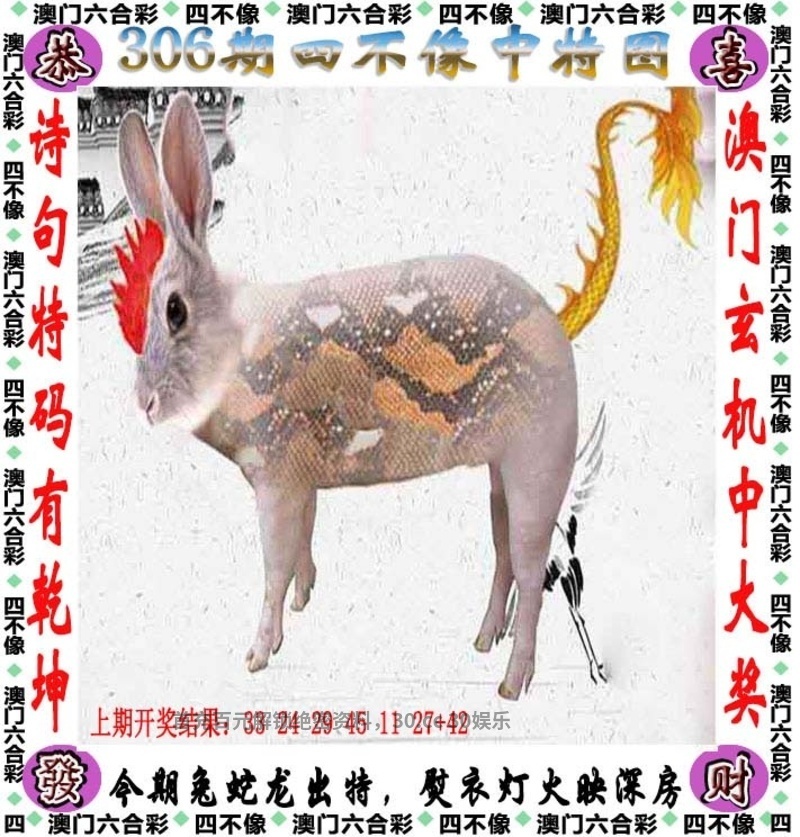 | 306期:复式连肖【兔猪狗猴马蛇】中2个 |